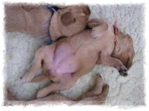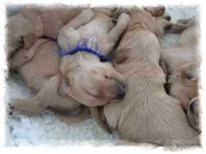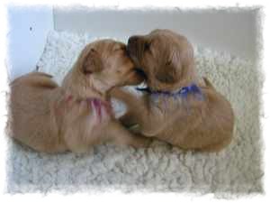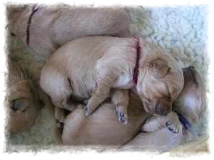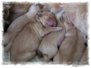 Ich bin die gelbe Hündin und möchte Euch etwas aus unserem Welpendasein erzählen. Die ersten zwei Wochen verbrachten wir mit Schlafen und Trinken. Doch nun wissen wir wozu wir da sind,...