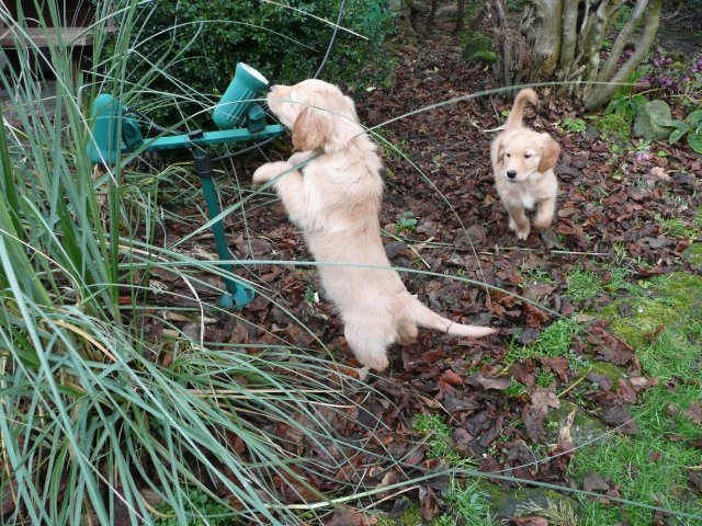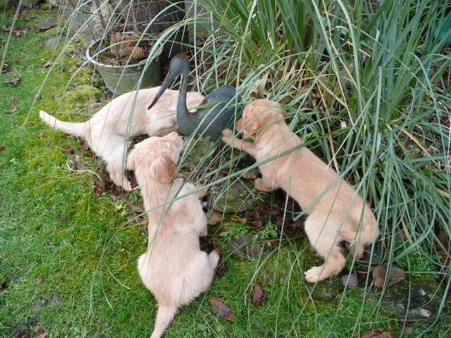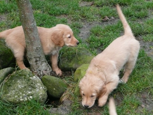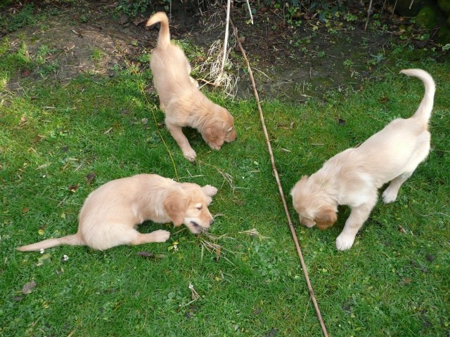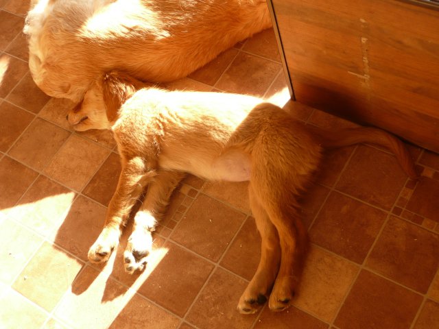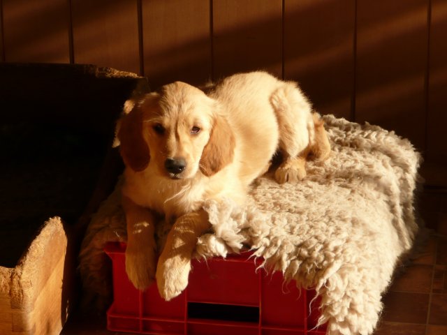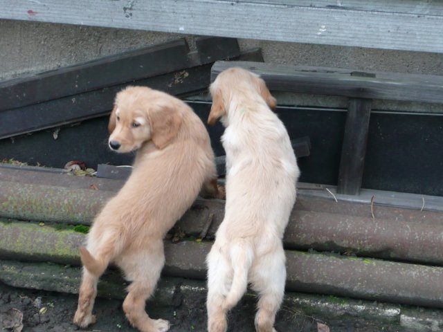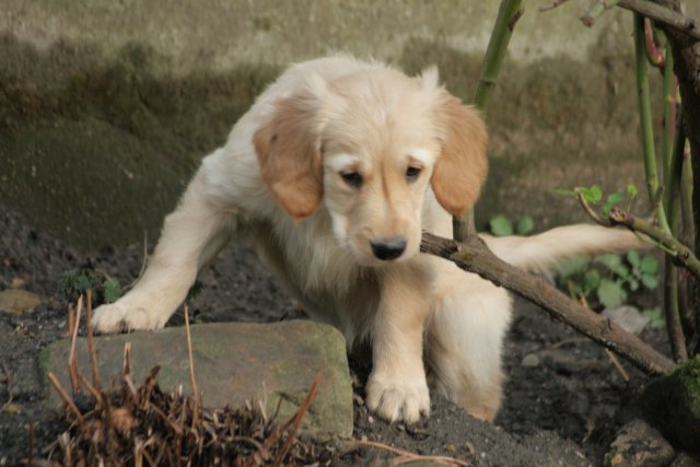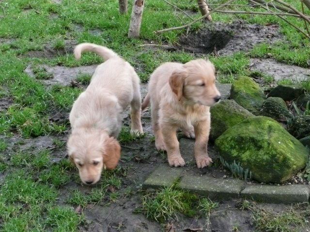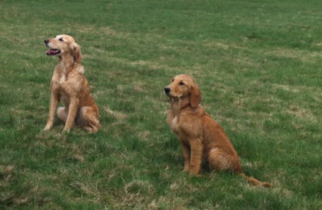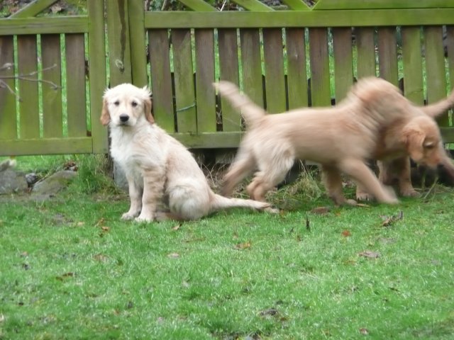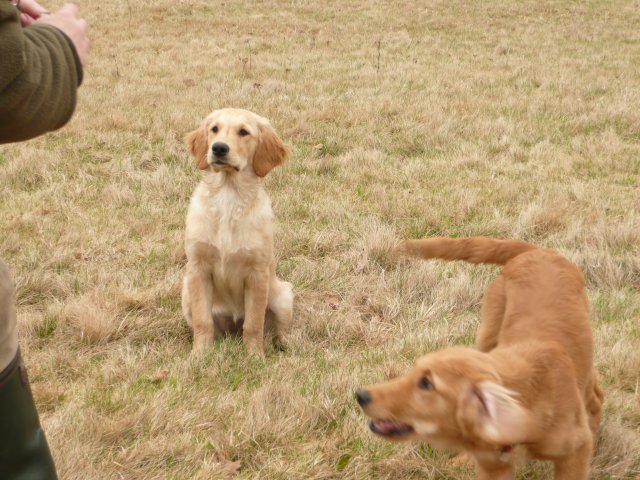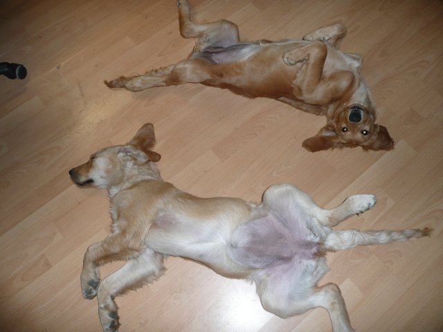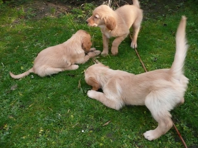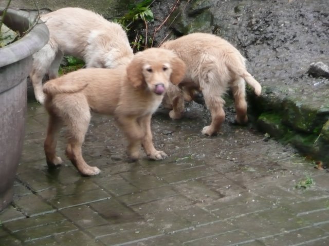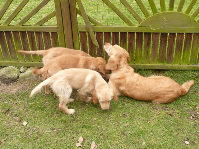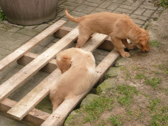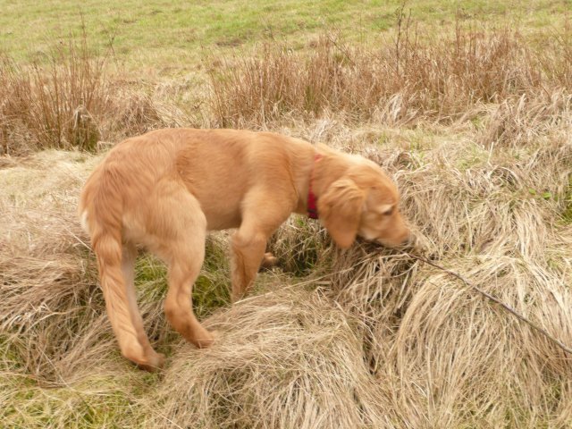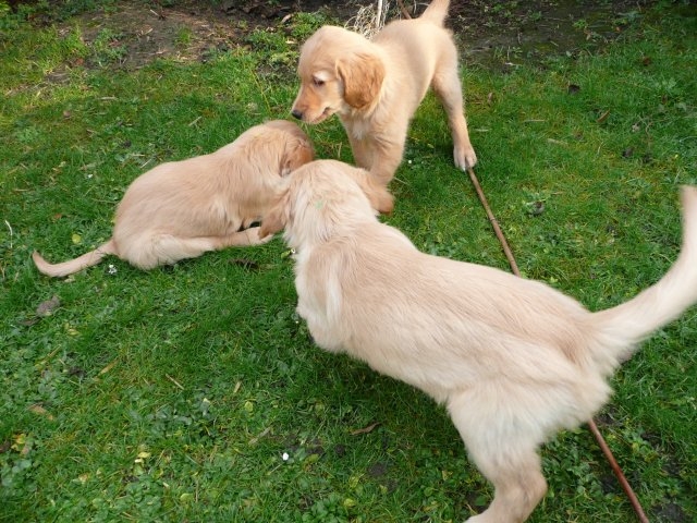 Von einem unserer Geländegänge am 27.03.2012 habe ich zwei kleine Filmchen mitgebracht. Leider konnte ich selber am Wasser keine Aufnahmen machen, ich muß mir einmal jemanden mitnehmen der die Kamera führt. Wasser ist für die Beiden kein Problem, sie springen mit einem Riesensatz hinein und fühlen sich darin wohl. Als eine Gruppe anderer Hunde kam, sind wir in den Wald und da ist dann ein kleines Filmchen entstanden. Leider läuft von der Filmbearbeitung der Ton nicht synchron...also nicht wundern, Bild und Ton passen nicht zueinander. Nachdem dann die Großen ihren Spass hatten, durften Pippa und Phillis noch einmal über die Wiese toben.