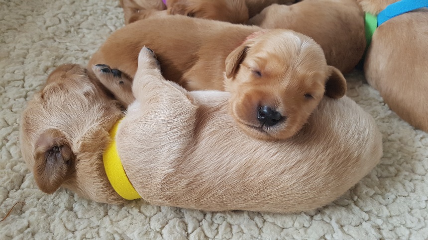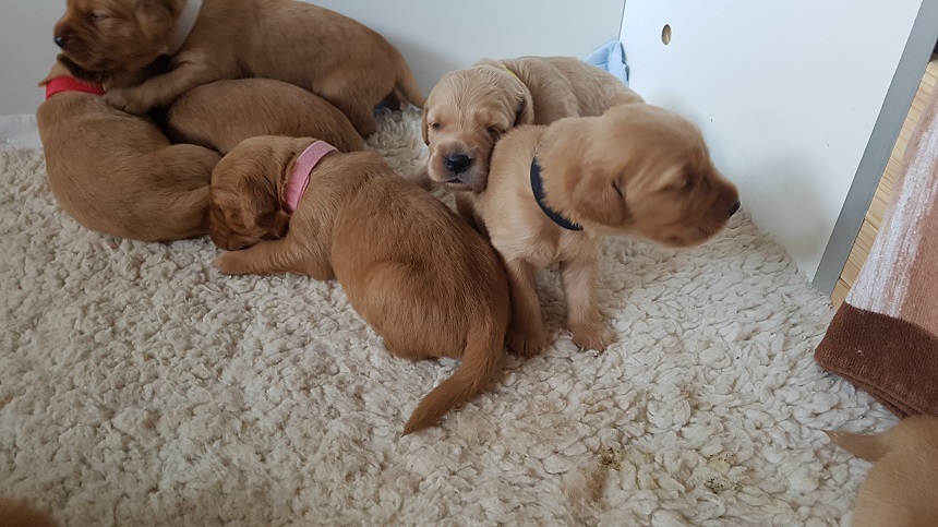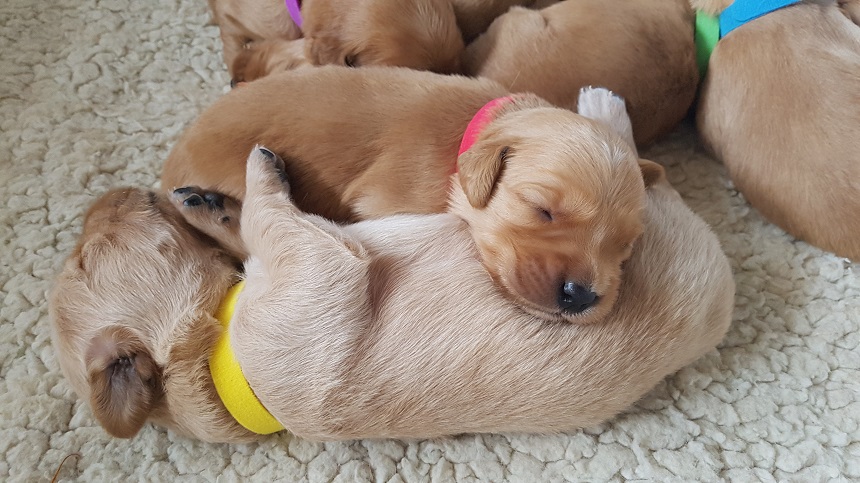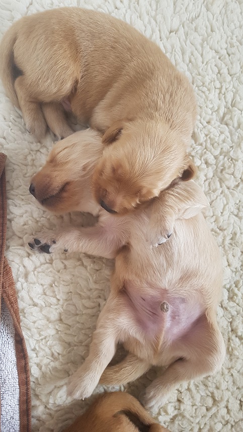 Speziell in den letzten Tagen sieht man die Entwicklung der Kleinen sehr deutlich. Sie stemmen sich immer mehr auf ihre kleinen Läufen und wackeln durch die Kiste....was sehr niedlich aussieht. Die Fortschritte kann man schon innerhalb eines Tages sehen. Die Augen öffnen sich immer mehr und sie finden sich gegenseitig schon sehr interessant.