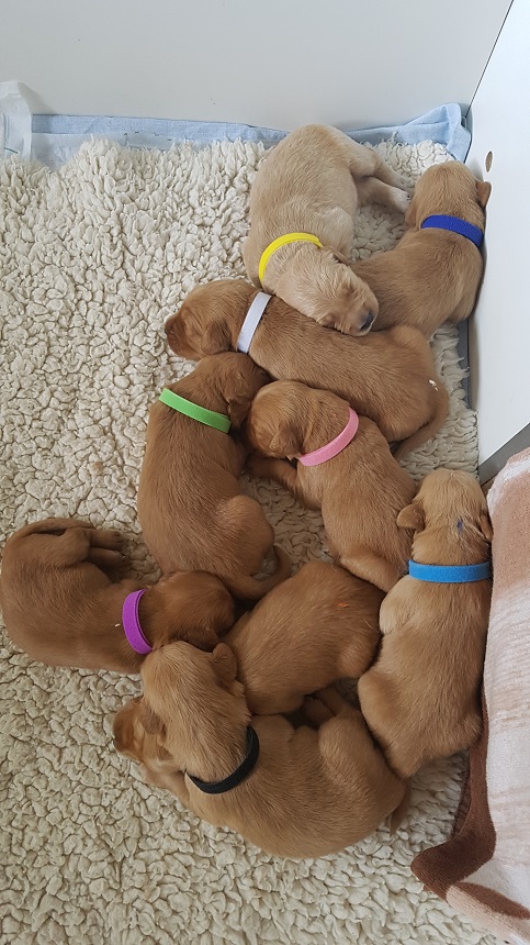 Bei diesem Wurf habe ich mich für kleine Farbhalsbändchen entschieden. Die Wachsstifte sind nicht mehr das was sie waren...sie krümeln mehr wie sie schmelzen und bringen nicht den gewünschten Effekt.